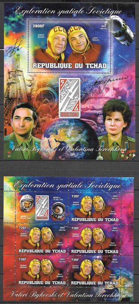 Чад 2013 г. Космос, Восток. В. Аксенов и В. Быковский, блок и малый лист