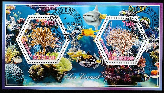 Чад 2014 год. Кораллы, малый лист (I) (гашёный)