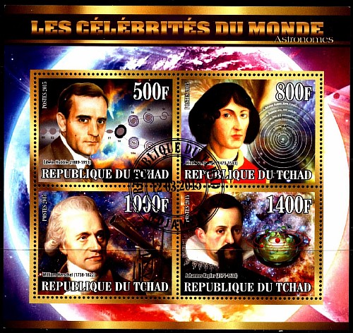 Чад 2015 год. Известные астрономы. Гашеный малый лист