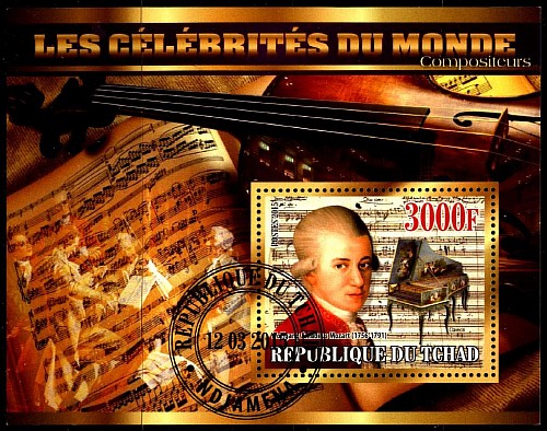 Чад 2015 год. Музыка. В.И. Моцарт. Гашеный блок