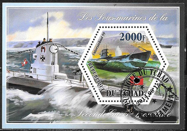 Чад 2014 год. Немецкие подводные лодки, 1 гашеный блок