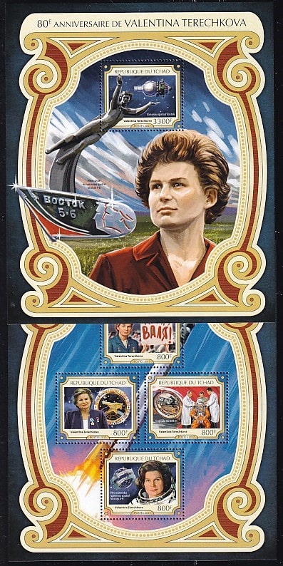 Чад 2017 год. Космос. Валентина Терешкова, малый лист + блок