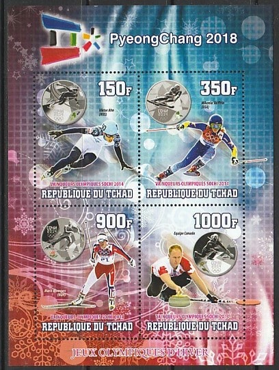 Чад 2018 год. Зимние Олимпийские игры в Сочи, малый лист (II) Сувенирный выпуск.