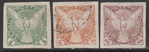 Чехословакия (ЧССР) 1920 год. Летящий ястреб, 3 газетные марки (гашёные) (1,8/0,8)
