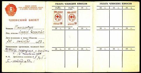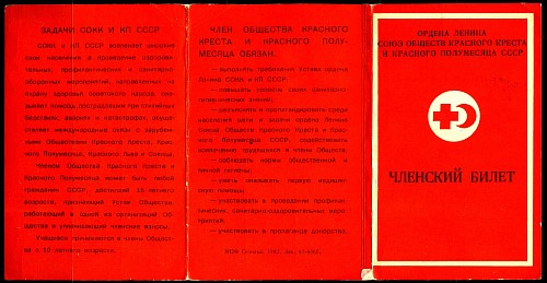 Членский билет общества Красного Креста и Красного Полумесяца СССР