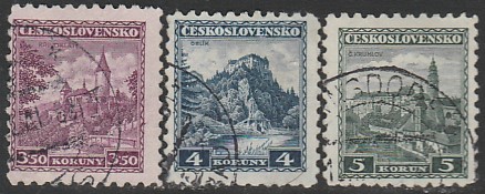 ЧССР 1932 год. Замки Пюрглиц и Орлик, Чешский Кремль, 3 гашёные марки