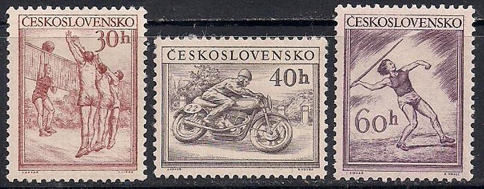 ЧССР 1953 год. Спорт. 3 марки с наклейкой