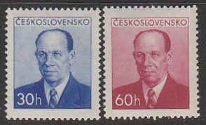 ЧССР 1953 год. Стандарт. Политик Антонин Запотоцкий, 2 марки (наклейка)