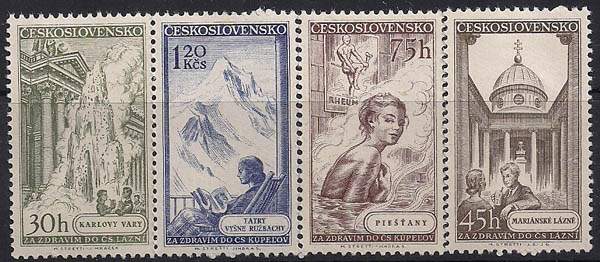 ЧССР 1956 год. Отдых на курортах Чехословакии. 4 марки с наклейкой