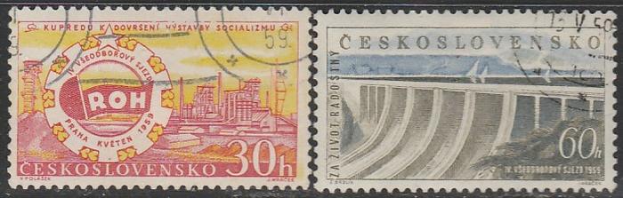 ЧССР 1959 год. IV Национальный конгресс профсоюзов в Праге, 2 гашёные марки