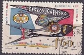 ЧССР 1962 год. Летящая ласточка с надписью "FIP", эмблема Праги, 1 гашеная марка
