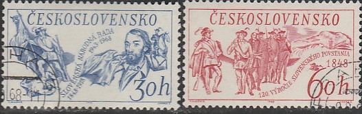 ЧССР 1968 год. 120 лет Словацкому восстанию и основанию I Словацкого Национального Совета, 2 гашёные марки