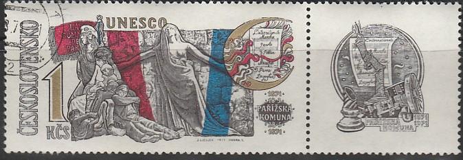 ЧССР 1971 год. 100 лет Парижской коммуне. Памятник "Коммунары", 1 гашёная марка с купоном