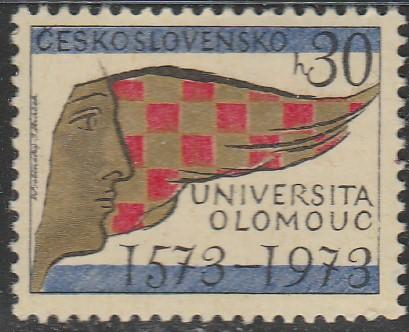 ЧССР 1973 год. 400 лет университету Оломуца. Голова с орлиными крыльями в цветах Моравии. 1 марка