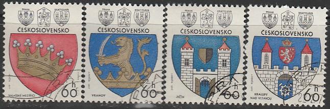 ЧССР 1977 год. Гербы городов, 4 гашёные марки