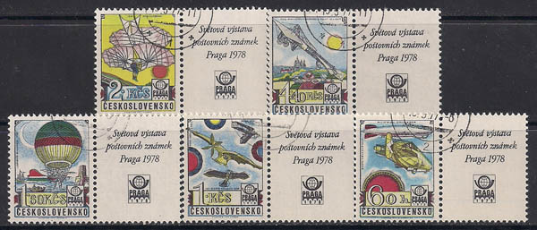 ЧССР 1978 год. История развития авиации. 5 гашёных марок с правым купоном