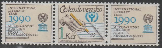 ЧССР 1990 год. Международный год грамотности, 1 марка с купонами