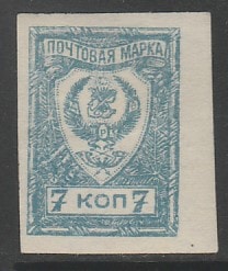 Дальневосточная Республика г. Чита 1922 год. Стандартный выпуск. Герб республики, ном. 7 к., 1 марка (5) (наклейка)