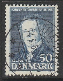 Дания 1951 год. Физик Ханс Кристиан Эрстед, 1 марка (гашёная) (1,5/0,7)
