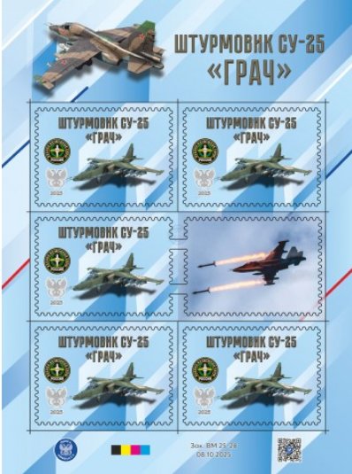 ДНР 2025 год. Малый лист виньеток Техника СВО. Штурмовик Су-25 "Грач" (356)