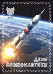 ДНР 2025 год. Виньетка "День Космонавтики" (71) Сувенирный выпуск. 3 июня 2022 года с 31-й площадки космодрома Байконур выполнен успешный пуск ракеты-носителя «Союз-2.1а»под именем «Донбасс» с грузовым кораблем «Прогресс МС-20».