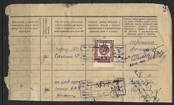 Документ. Лист из книги учета с непочтовыми марками, 1937 год