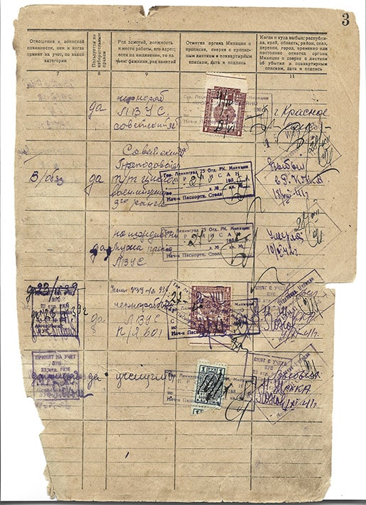 Документ. Лист из книги учета с непочтовыми марками, 1938 год