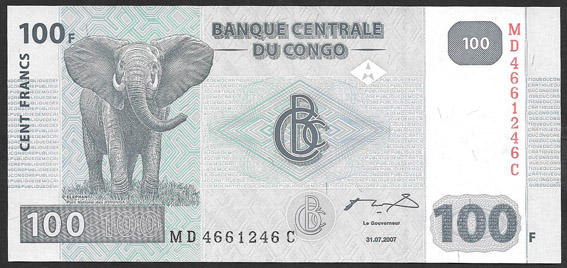 ДР Конго 100 франков 2007 год UNC