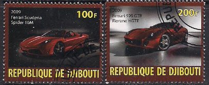 Джибути 2009 год. Автомобили "Феррари". 2 гашеные марки