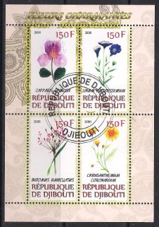 Джибути 2011 год. Цветы. Гашеный малый лист Сувенирный выпуск