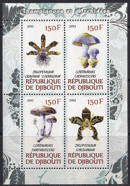 Джибути 2012 год. Грибы и орхидеи. 1 блок Сувенирный выпуск