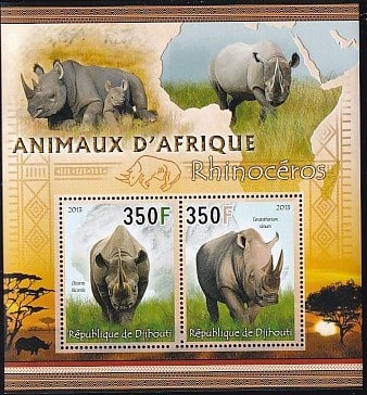 Джибути 2013 год. Африканские животные. Носороги, блок