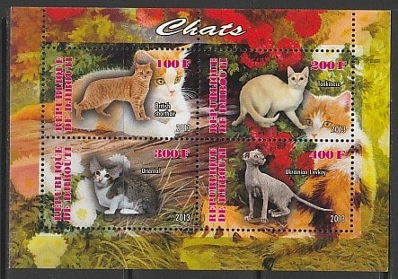 Джибути 2013 год. Домашние кошки, блок. Сувенирный выпуск.