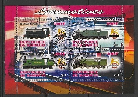 Джибути 2013 год. Паровозы (I), малый лист (гашёный) Сувенирный выпуск.