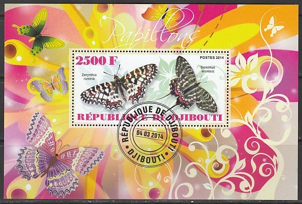 Джибути 2014 год. Бабочки Восточной Африки, гашёный блок
