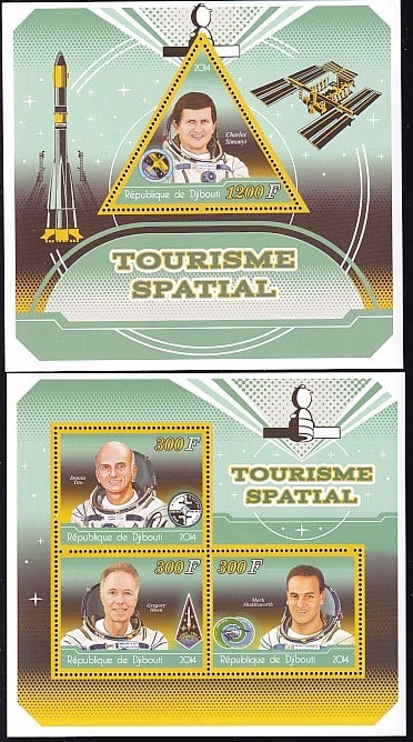 Джибути 2014 год. Космический туризм, блок + малый лист