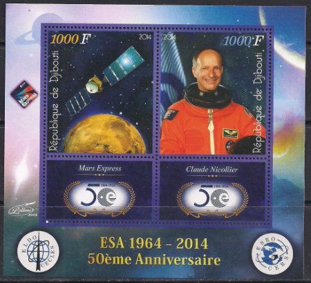 Джибути 2014 год. Швейцарский космонавт К. Николье. Лист Сувенирный выпуск