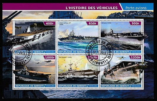 Джибути 2015 год. Авианосцы, гашёный малый лист (сувенирный выпуск)