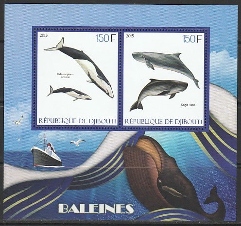 Джибути 2015 год. Киты, малый лист. Сувенирный выпуск.