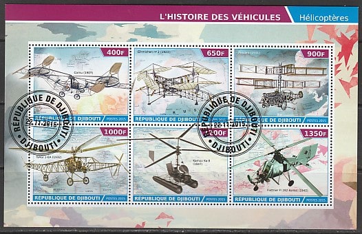 Джибути 2015 год. Летательные аппараты, гашёный малый лист (сувенирный выпуск)