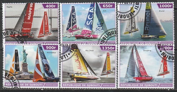 Джибути 2015 год. Парусный спорт. Яхты, 6 марок (гашёные) Сувенирный выпуск.