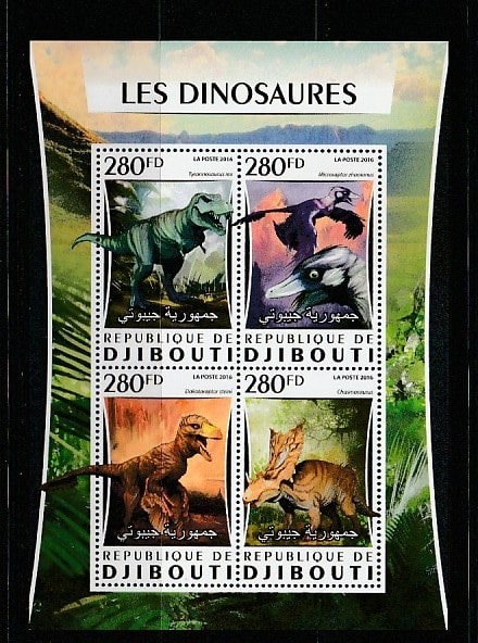 Джибути 2016 год. Динозавры, малый лист.