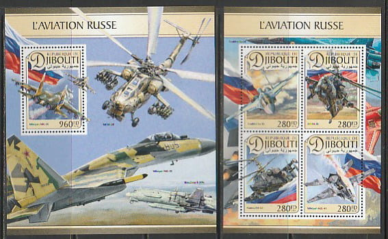 Джибути 2016 год. ВВС России, малый лист + блок.