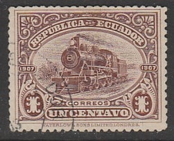 Эквадор 1908 год. Паровоз, 1 марка из серии (гашёная) (1/2)