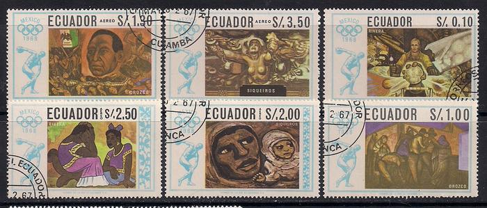Эквадор 1967 год. Летние Олимпийские Игры в Мехико. Национальная живопись. 6 гашеных марок