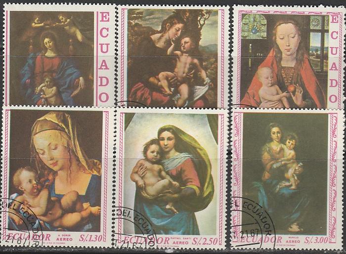 Эквадор 1967 год. Живопись. Образы Мадонны, 6 гашёных марок