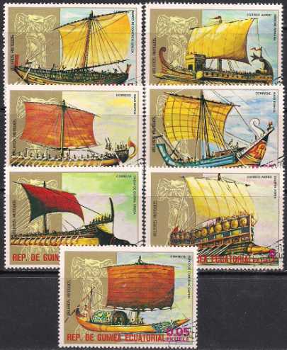 Экваториальная Гвинея 1978 год. Старинные парусные корабли. 7 гашеных марок
