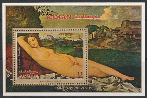 Эмират Аджман 1971 год. Джорджоне "Спящая Венера", блок.