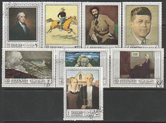 Эмират Шарджа 1968 год. Американская живопись, 8 марок (гашёные) (6/2,5)
