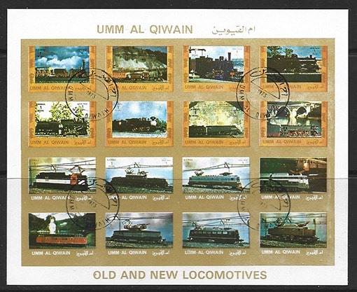 Эмират Умм-эль-Кайвайн 1973 год. Локомотивы, гашеный беззубцовый малый лист